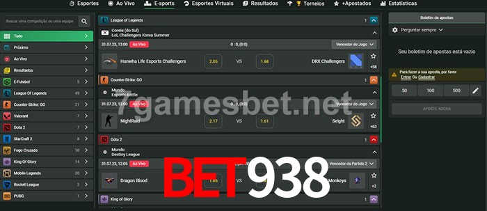 O Bet938 oferece uma grande seleção de opções de apostas em e-sports com probabilidades competitivas
